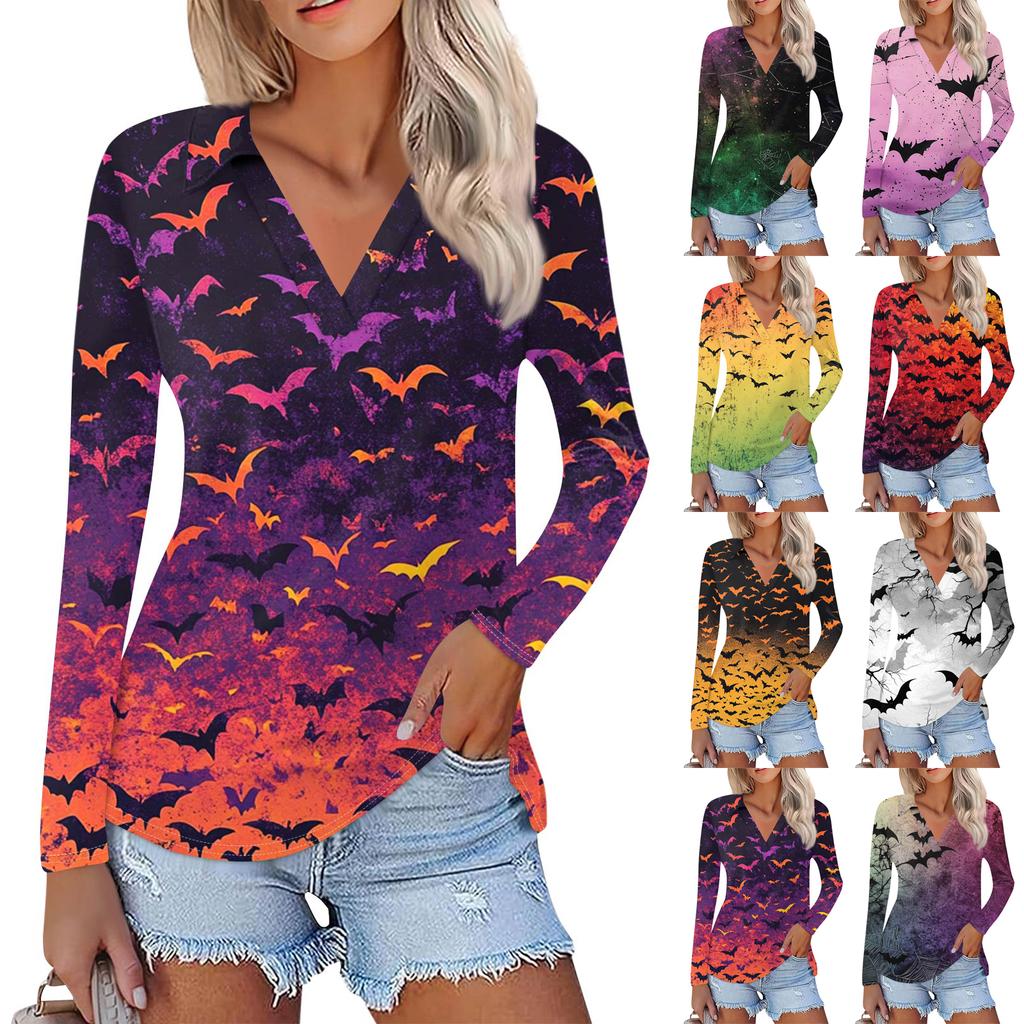 Dámská letní móda ležérní košile s potištěným výstřihem do V s dlouhým rukávem