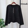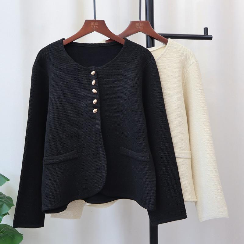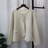 Crew neck bright silk long-sleeved sweater jacket autumn and winter new temperament loose and versatile knitted cardigan women