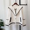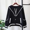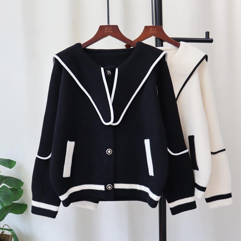 Autumn and winter new contrasting color navy collar knitted double-sided cardigan temperament loose sweater jacket women