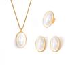 Stainless Steel Gold Plated Open Ring White Shell Oval Pendant Necklace Earrings Set Elegant Zircon Accessories for Women