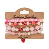 Strawberry Pendant Pink Beads Multilayer Stretch Bracelet Cute Fruit Design Hand Decoration Gift For Women