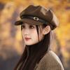 British Style Hat for Women's Autumn and Winter Retro Newspaper Hat Casual Versatile Beret Windproof Face Painter Hat
