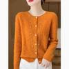 Dámská podzimní a zimní bubnová taška dutý kardigan kulatý výstřih žakárová volná dlouhý rukáv pletená bunda svetr