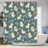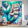 Modrý mořský panna sprchový závěs s potiskem jednorožce a kočky pro dětskou koupelnovou dekoraci, roztomilý design mořského života s bublinkami, látková sada koupelnové předložky (180x