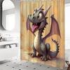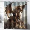 Fantasy Dračí Koupelnová Rohožka Sprchový Závěs Sada Středověká Hradní Krajina se Zelení Modrá Fialová Červená Květinový Design Dekorace pro Koupelnu
