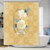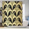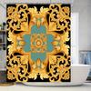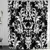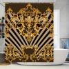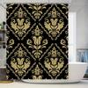 Vintage barokní květinový sprchový závěs pro dekoraci koupelny, černý podklad se zlatým lemováním.