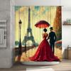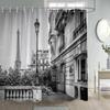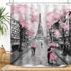 Vintage Paris City Scenery Shower Curtain Tower Pink Rose Flower Painting Spring Bathroom Decor Waterproof Screen With Hooks