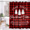 Merry Christmas Tree Xmas Shower Curtain Buffalo Check Plaid Forest Bathroom Decor Farmhouse Waterproof Fabric Screen With Hooks