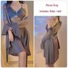 Dopřejte si eleganci a půvab s touto sofistikovanou sadou noční košile a županu.. Luxusní saténová noční košilka bez zad s hlubokým výstřihem do V s vycpávkami, který zvýrazní vaši siluetu a zároveň nabízí pohodlí a podporu.. Tato sada, doplněná odpovídajícím županem s vázáním v pase, kombinuje smyslnost s nádechem klasického půvabu, ideální pro lenošení nebo romantický večer ve dvou.