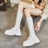 Dámské podzimní tenké Martin boots 2025 nové univerzální s tlustou podrážkou prodlužující výšku dlouhé šněrovací ale ke kolenům módní boty dámské boty