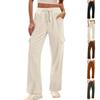 Módní dámské manšestrové rovné kalhoty s vysokým pasem a vázáním, s kapsami a širokými nohavicemi, ležérní kalhoty pro ženy