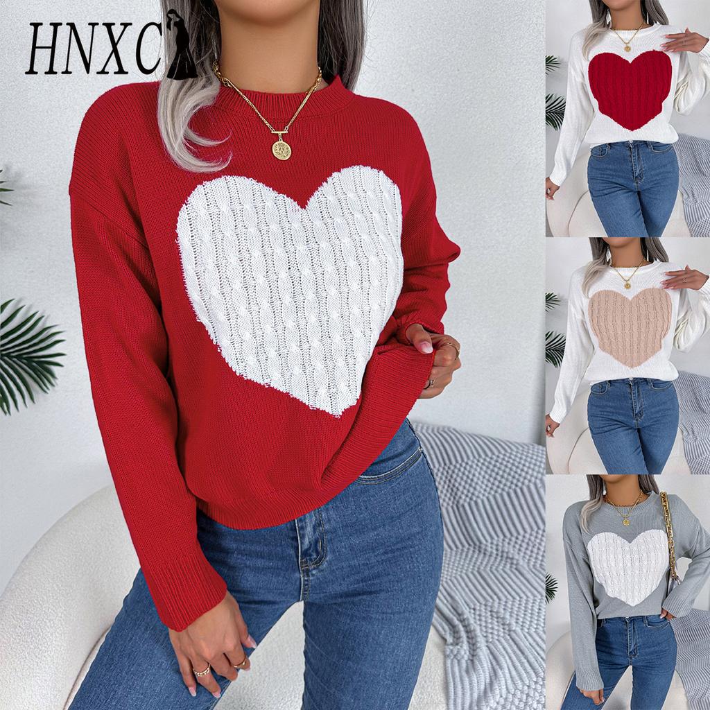 HNXC Autumn and Winter Twisted Heart Long-sleeved Pullover Sweater for Valentine's Day Women's Wear
