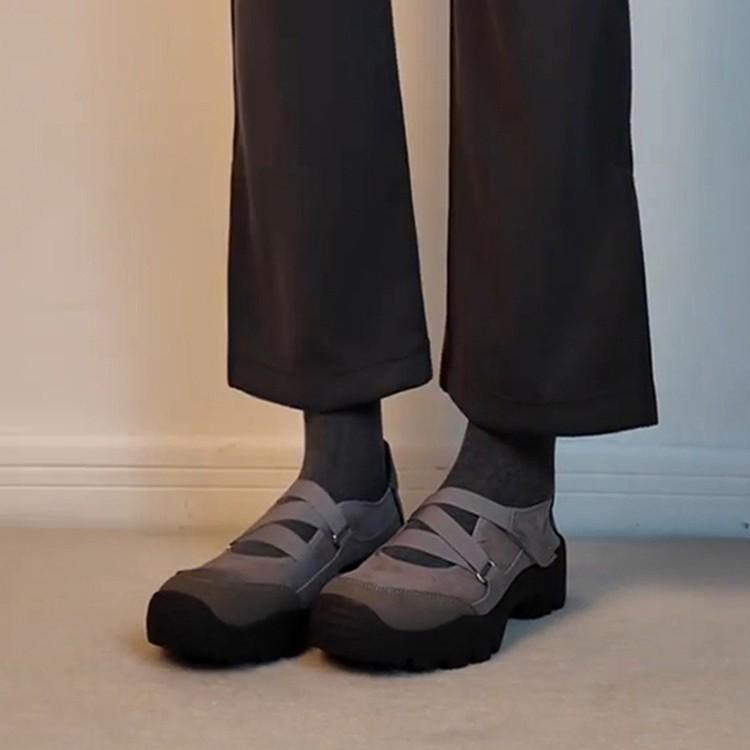 Spot version~ Retro lightweight sports casual shoes women's cross with round head suede thick sole comfortable Mary Jane single shoes