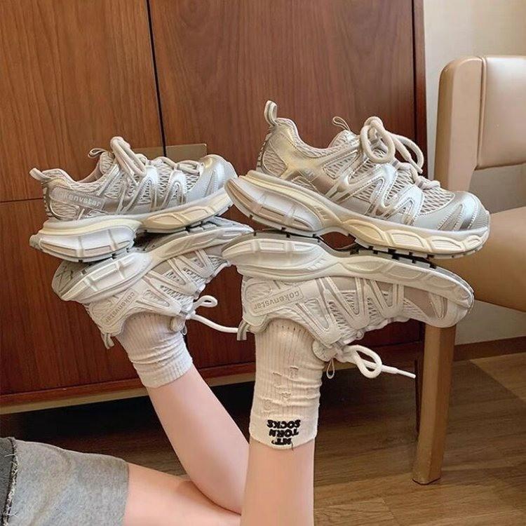 Big head and platform dad shoes for women 2025 summer new mesh breathable kapibara lightweight running sports shoes
