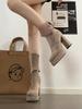 11Cm with waterproof table short boots women's round head thick heel thick sole apricot elastic thin medium tube single boots black
