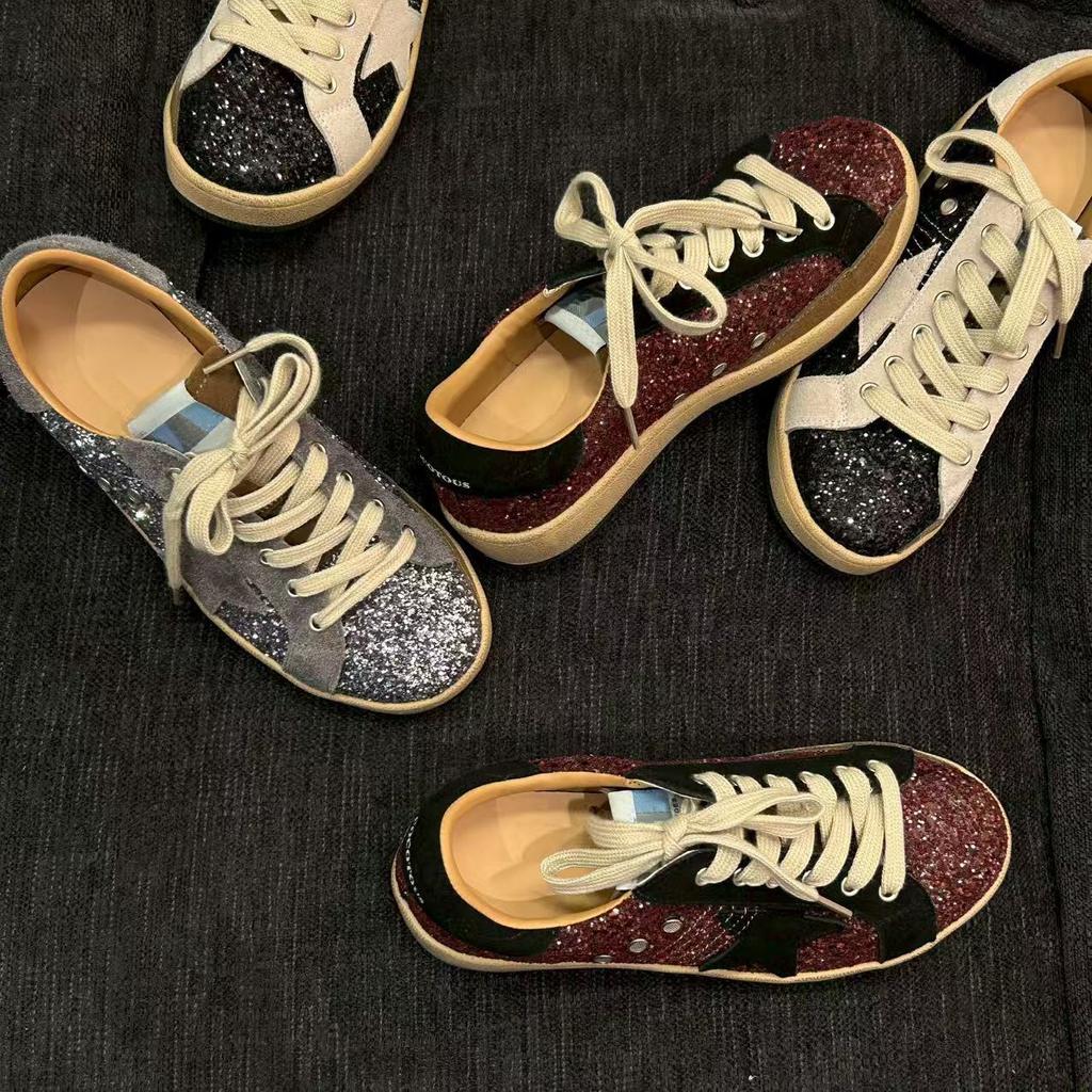 2025 new high version stars old small dirty shoes women's flat white shoes inner height increase couple large size casual shoes