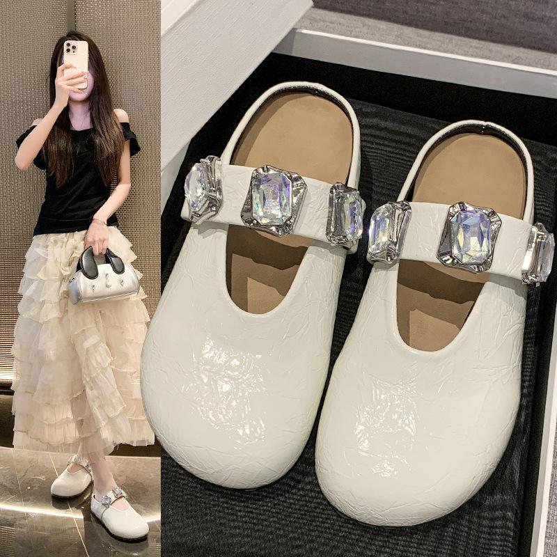 Internet celebrity super fire fairy wind square head baotou rhinestone versatile slippers women's shoes summer wear 2025 new flat sandals