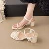 Silver high heels 2025 summer new French temperament with skirt not tired, middle heel with sandals
