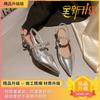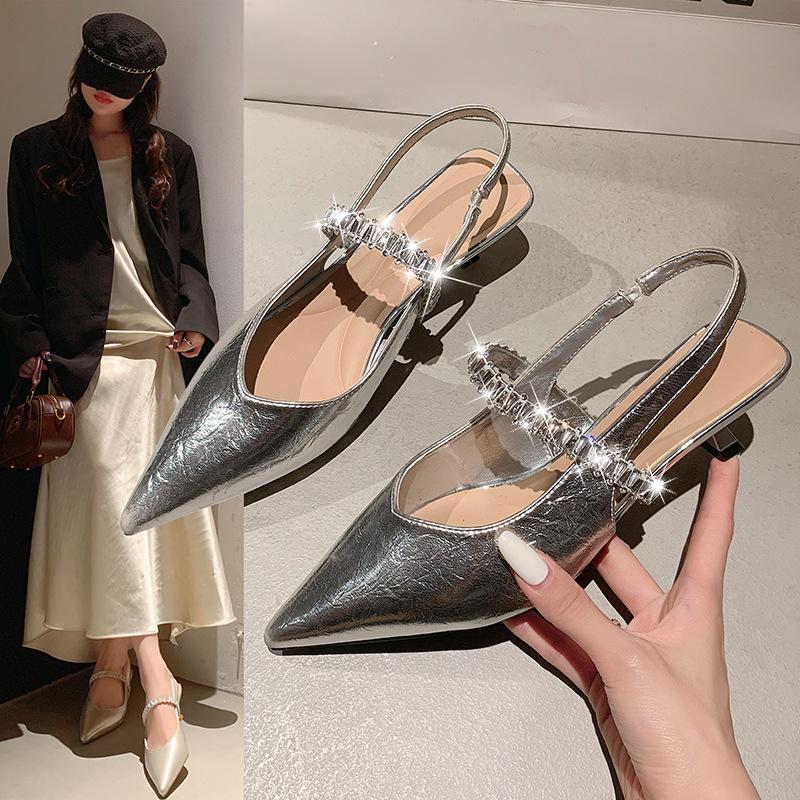 2025 new fashionable pointed one-word bag head sandals thick heel French cool slippers women's small fragrant explosive single shoes