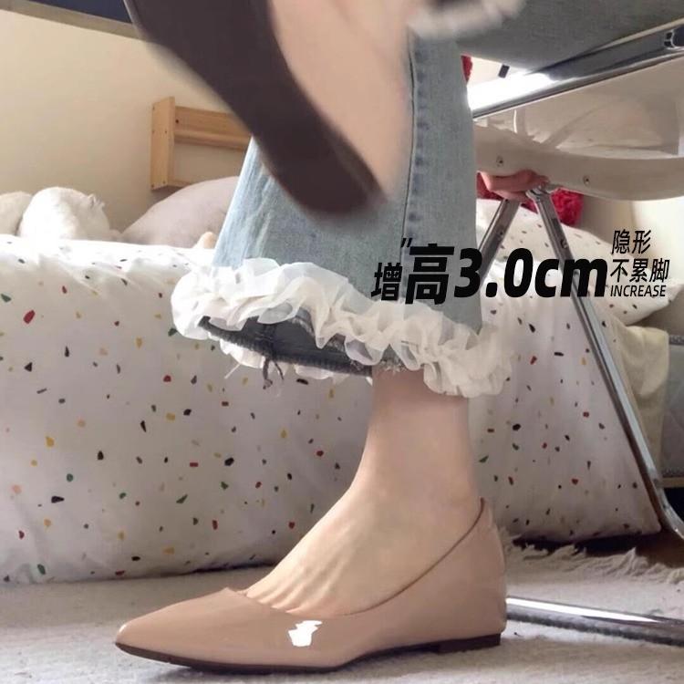 Cowhide version~ Gentle temperament flat bottom inner height increase Mary Jane shoes women's genuine leather small leather shoes pointed beautiful s