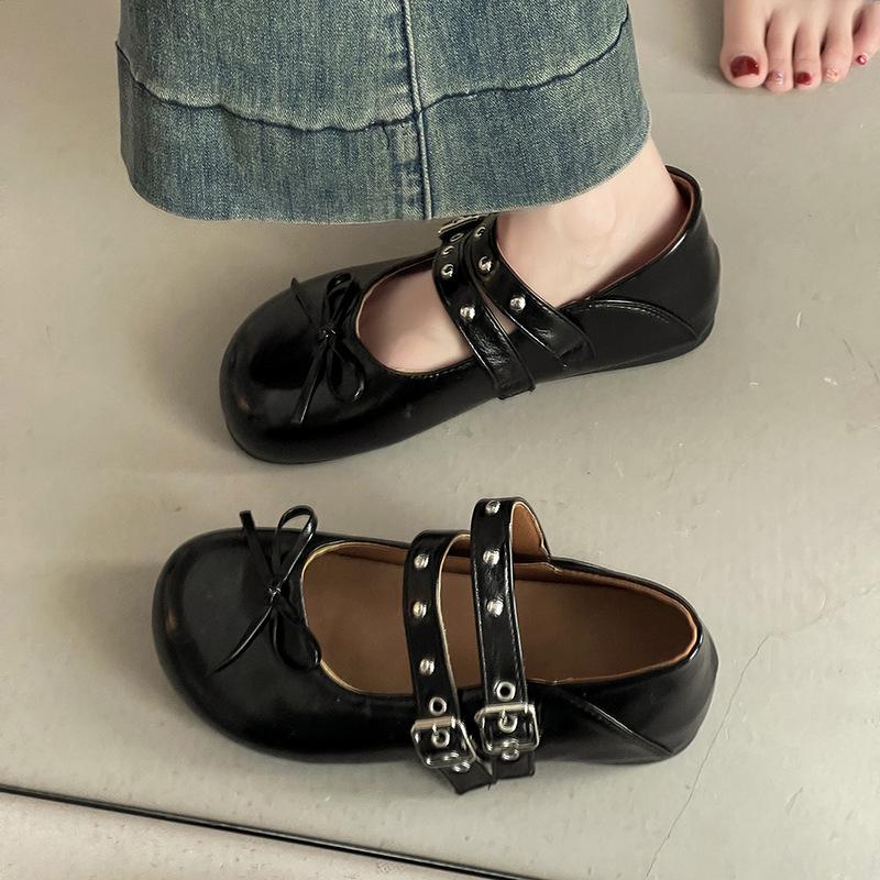Ballet style bow Mary Jane women's shoes girls small leather shoes summer fashion retro casual flat shoes soft single shoes