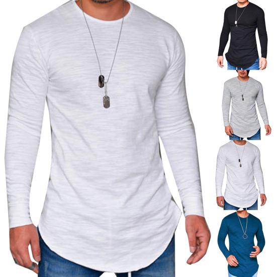 Pánské podzimní jednobarevné bavlněné tenké tričko s dlouhým rukávem a kulatým výstřihem, spodní top