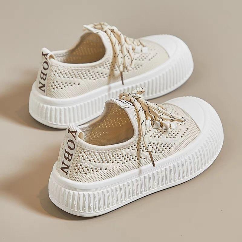 Summer breathable canvas shoes women's 2025 new fly-woven mesh mesh shoes one-pedal board shoes sports and leisure white shoes