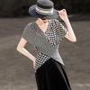 Summer Bow Lace Up Shirt Women Elegant Houndstooth Printing Blouses Female Vintage Casual Sleeveless Top