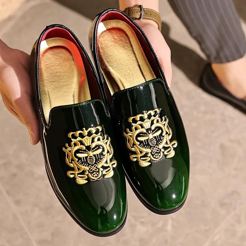 Fashion 2025 New Men Dress Shoes Designer Embroidered Moccasins Luxury High Quality Men Casual Shoes Fashion Patent Leather Loafers Male