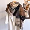 Red plaid pure wool scarf female winter mother gift premium cashmere scarf burgundy shawl