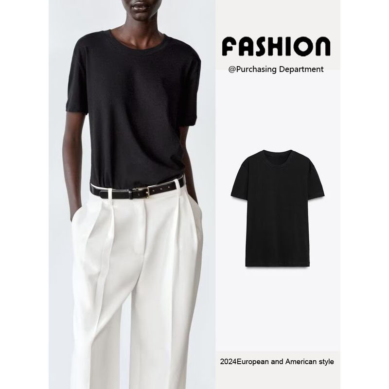 Za2025 Spring New Women's Clothing round Neck Short Sleeve Plaid Three-Color Enzyme Treatment Decorative Layer Cotton T-shirt 4174751
