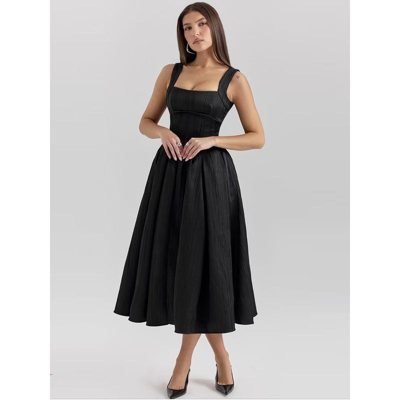 Fumei Mingling House Same Style French style High-Grade Glossy Texture Waist Hugging Slimming Mid-Length Sling Dress