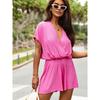 Solid Color Jumpsuit Summer V-neck Fashion Casual Waist Hugging Solid Jumpsuit Women