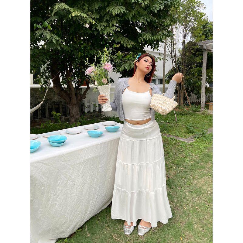 Brother Nan Loose-Fit White Elastic Waist Skirt Women's Summer Thin 2024 New Arrival Plus Size Plus Size Ladies High Waist A- line Skirt