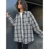 European and American Women clothes Top Fashion Stripe Patchwork Shirts Lazy Plaid Top Women