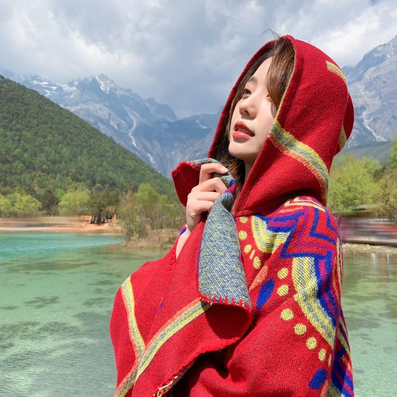 Xizang Qinghai Lake Travel Shawl Scarf Nepal Lijiang Cloak Desert Photo Autumn and Winter Women's Cloak