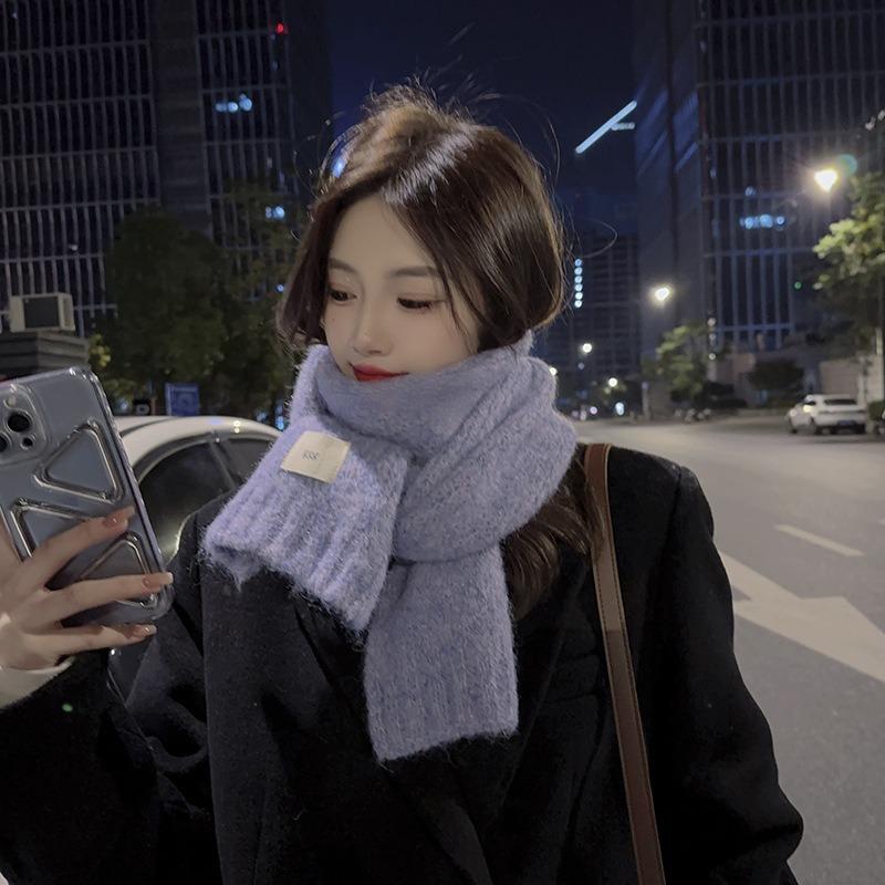 Wind containing wool purple scarf girls autumn and winter white wool warm thickened student scarf