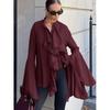Fashion Shirt Women's Long Sleeve Loose Stacked Ruffles Brown 2025 Summer Casual Elegant Women's Tops Vacation