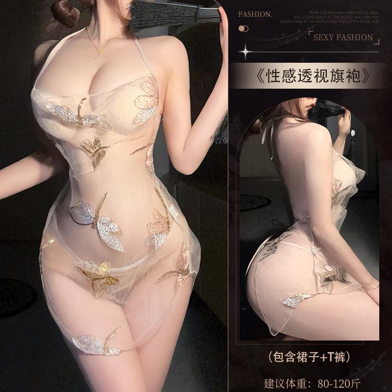 Sex lingerie sexy perspective pure desire butterfly embroidery strap skirt tease passion