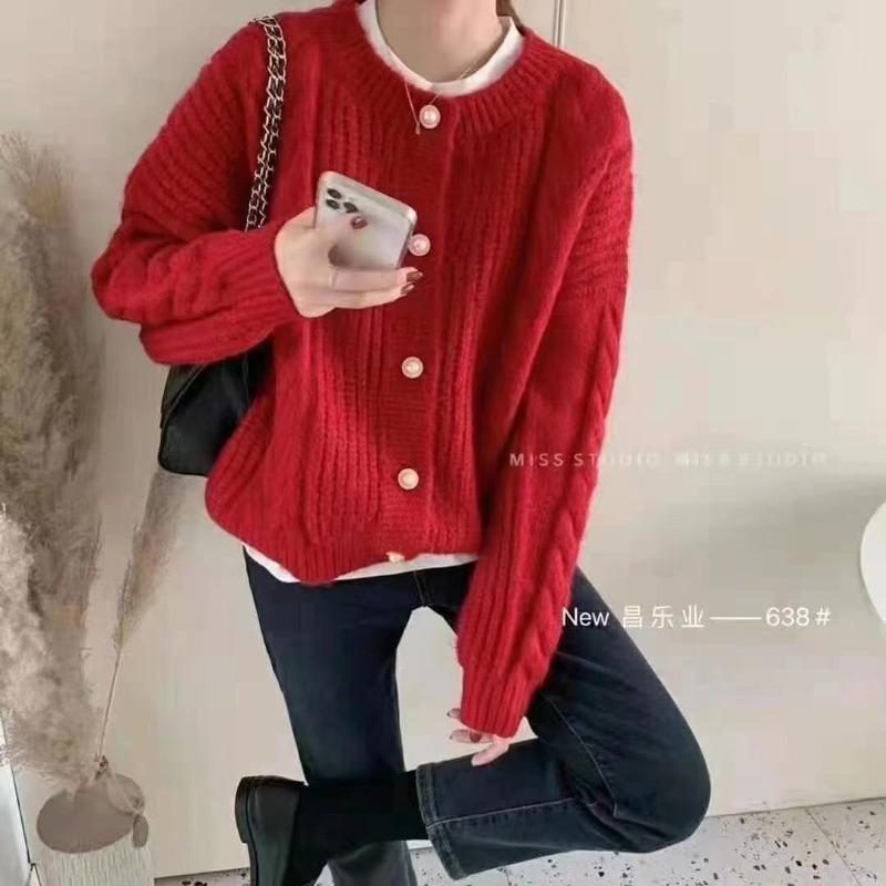 Spring and Autumn Short Twist Sweater Cardigan Women's Loose Lazy Wind Crew Neck Sweater Women's