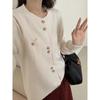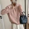 Real autumn and winter new gentle wind double-breasted design sense pocket knitted cardigan women's solid color crew neck sweater jacket