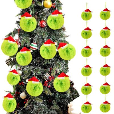 2,4palcové vánoční ozdoby ve tvaru koule s chlupatými zelenými vlasy, třpytivá závěsná chlupatá elfí koule, červeno-zelená plastová ozdoba