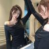 Pure Desire Style Lace Patchwork Off-the-shoulder Long-sleeved T-shirt for Women, A Short Off-the-shoulder Top for Slimming and Shaping In Autumn