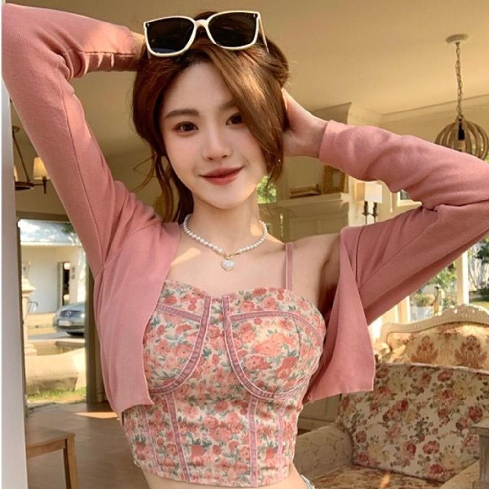 Sweet and Sexy Halter Floral Vest, Pure and Elegant Knitted Long-sleeved Cardigan Coat for Women