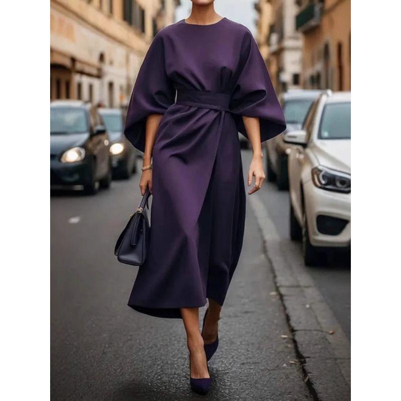 Work Fashion Temperament Elegant Solid Waist Hugging Dress Casual Batwing Sleeve Long dress Elegant Dress