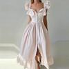 Flying Sleeves Frill Dress 2025 Fresh Sweet Square Collar Breasted Stripe Slit Long dress