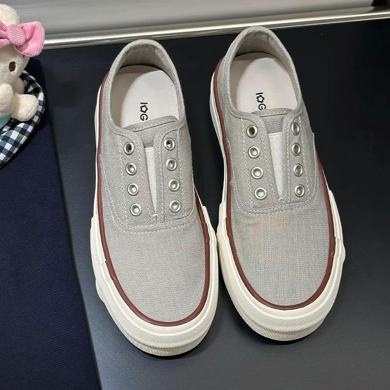 Linen thick-soled one-pedal thin canvas shoes women's new breathable and versatile casual height-increasing white shoes board shoes