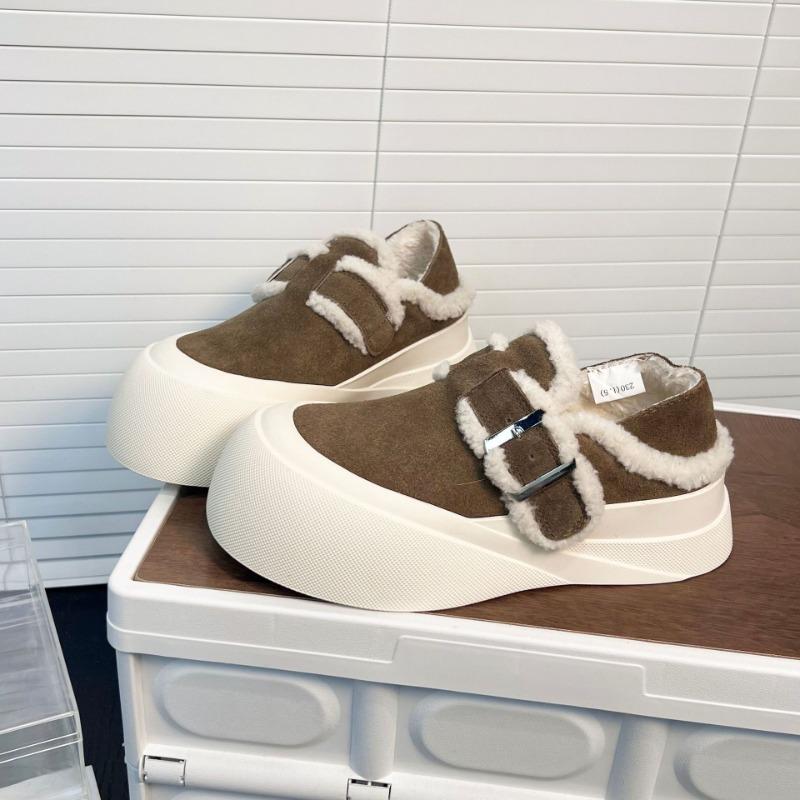 Leather velvet thick-soled height-increasing versatile board shoes, new ugly and cute, soft-soled casual women's shoes that are not tired
