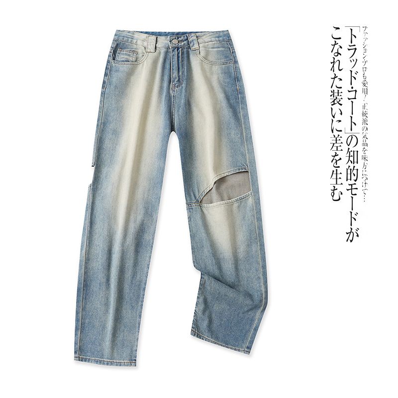 Foreign Trade European and American Single Women Fashion Ripped Jeans New Knee Hollow Design Printing and Dyeing Color Loose Harem Pants