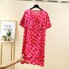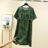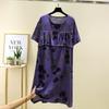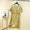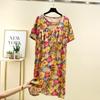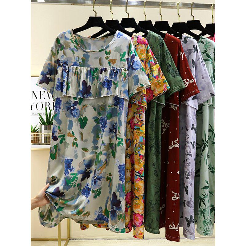 Bourette Short sleeve Dress Women Summer Thin Waist Hugging Home Dress Mid-Length A- line Skirt Artificial Cotton Loose Nightdress